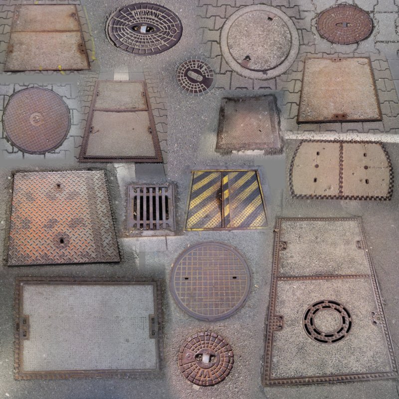 Die Vorstellung meines Vorhabens im Forum brachte - wie erwartet - verschiedenste Reaktionen hervor. Von „super, solche Details beleben EEP“ bis „wer braucht so ein Kleinzeugs“ war alles vertreten. Ich ließ mich davon nicht abschrecken, sondern füllte zwei Texturen mit den verschiedensten Kanaldeckeln. Dabei lernte ich auch, dass das Wort „Kanaldeckel“ nur in den seltensten Fällen stimmt - und nannte die Modelle fortan „Schachtabdeckungen“. Diese waren (nach den Fiddleyards) mein erstes Modellset, dass ich (in nicht einmal zwei Wochen) fertig stellte.