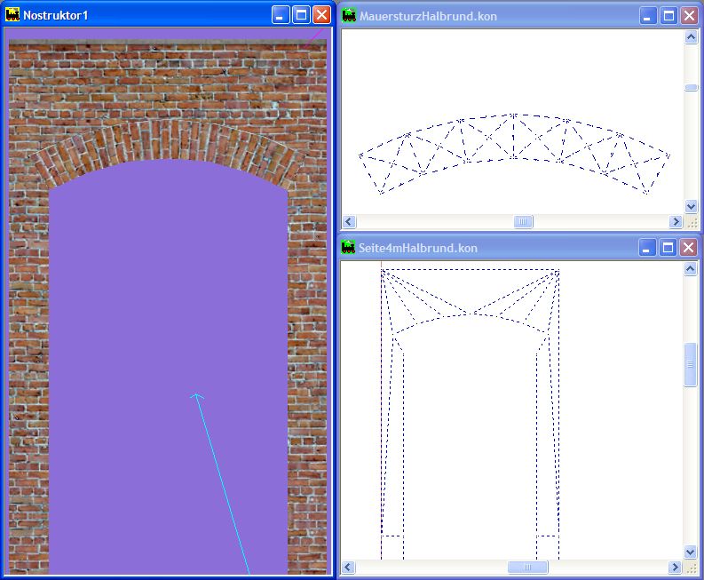 Aufbauend auf den Splines und Texturen des Grundsets, baute ich anschließend verschiedene Arkaden. Es gibt zwar eigentlich nur zwei Grundformen, durch die mannigfaltigen Kombinationsmöglichkeiten der Eigenschaften (Geländer, Material, Abdunkelung) entstanden dann aber doch ziemlich viele Modelle.