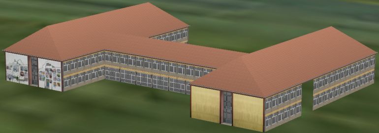 Meine ersten richtigen Erfahrungen mit dem (Home-)Nos machte ich Mitte 2010 mit dem Nachbau meiner damaligen Schule. Da ich fotorealistische Texturen verwendete, sah das ganze gar nicht mal so schlecht aus. Irgendwann schlief das Projekt jedoch wieder ein, und in diesem Zustand liegt es auch heute noch auf meiner Festplatte. Mal schauen, vielleicht wird ja irgendwann nochmal was daraus.
