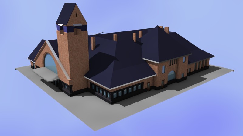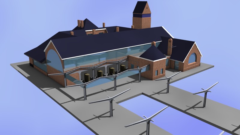 Momentan bin ich noch mit einem größeren Projekt beschäftigt. Für das LBE-Projekt, den Nachbau der Lübeck-Büchener Eisenbahn in EEP, habe ich mich (unbedachterweise) für den Bau des Empfangsgebäudes des Kopfbahnhofs „Travemünde Strand“ bereiterklärt. Zum Glück liegen mir Bauzeichnungen sowie viele Fotos vor, sodass ich den Bahnhof recht originalgetreu nachbauen kann. Aufgrund der Komplexität des Gebäudes baue ich jedoch nicht mit dem Nostruktor, sondern mit dem kostenlosen 3D-Programm Blender. Von dort kann man das Modell dann (über Umwege) nach EEP konvertieren.