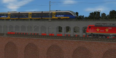 Die Basis des Gleismauersystems bilden zwei Mauersplines mit Mauerstein- und Betontextur.
