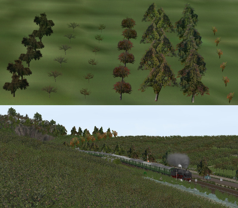 Jede „richtige“ Modellbahn hat irgendeine Form von Hintergrundkulisse, oft besteht diese aus einer blau bemalten Platte mit ein paar Wolken drauf. Nun können auch alle modellbahnartigen EEP-Anlagen mit diesen Hintergrundkulissen abgeschlossen werden.