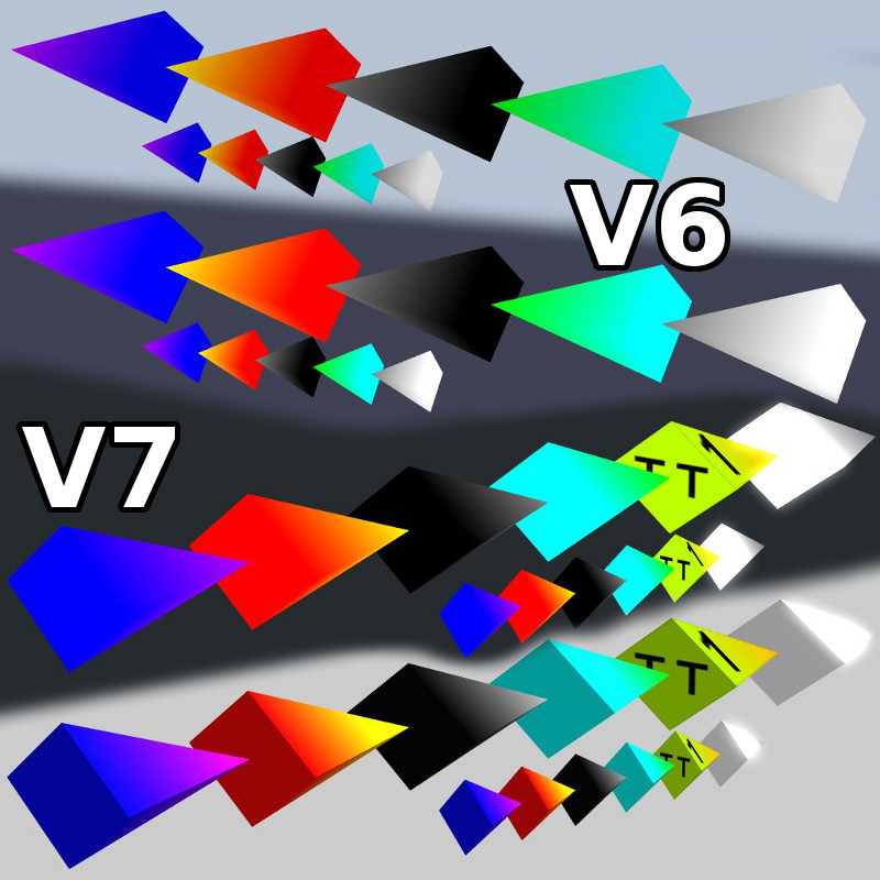 Um sowohl für weitläufige als auch kompakte Schaltkreise ein passendes Fahrzeug zu haben, gibt es die Schaltautos in jeweils zwei Größen. Das EEP6-Set enthält insgesamt zehn Schaltautos (die seit dem Update vom 06.11.2016 auch alle installiert werden), das EEP7-Set zusätzlich noch zwei weitere Schaltautos mit Tauschtextur (siehe Bild). Damit lassen sich weitere Farbkombinationen und auch individuelle Beschriftungen erstellen. Eine kurze Dokumentation ist für beide Versionen enthalten.