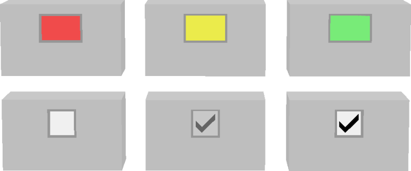 Mit dem Update sind noch vier Zustandssignale mit je zwei bzw. drei Zuständen dazugekommen, in Form von roten/gelben/grünen Flächen bzw. Checkboxen (siehe rechts).