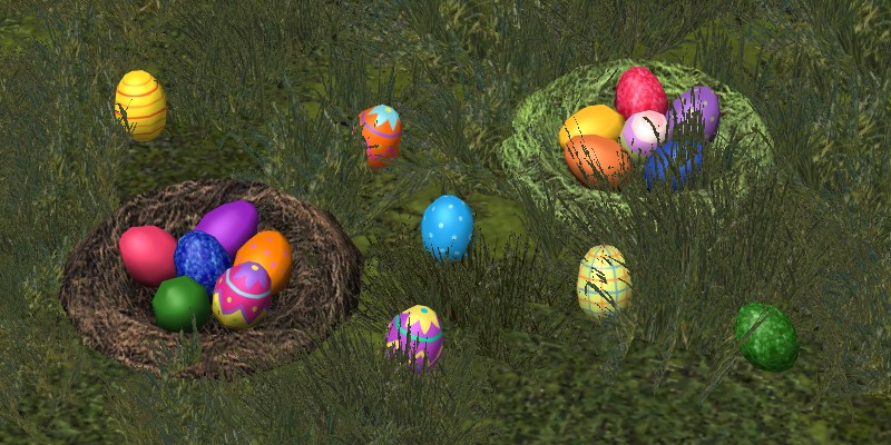 Die V8-Eier besitzen eine LOD-Stufe, mit der die Eier ab einer gewissen Entfernung komplett ausgeblendet werden.